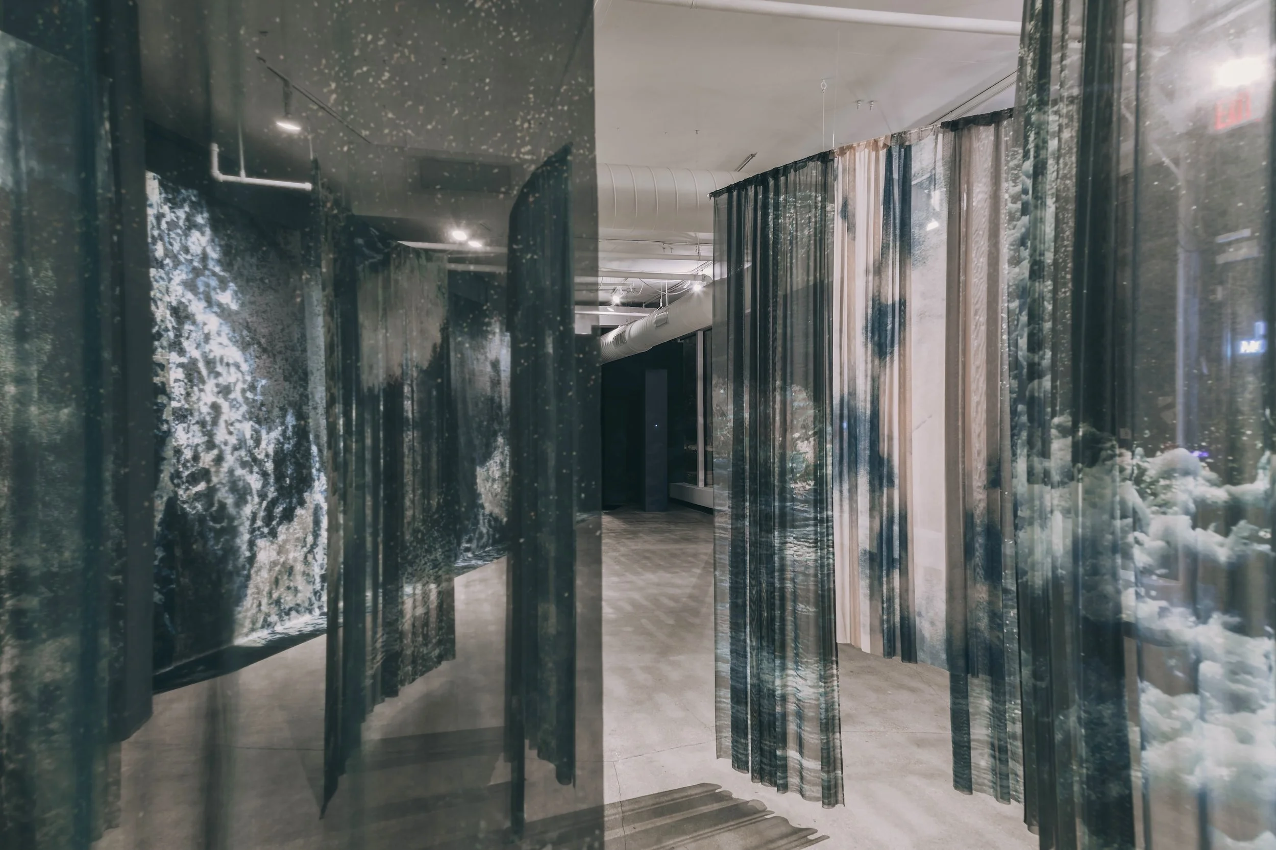Here, I approach the sea as both a visual and conceptual presence—something vast and powerful, yet deeply vulnerable. Through layered, translucent photographic textiles, I create an environment that shifts with light, movement, and the presence of the viewer.
