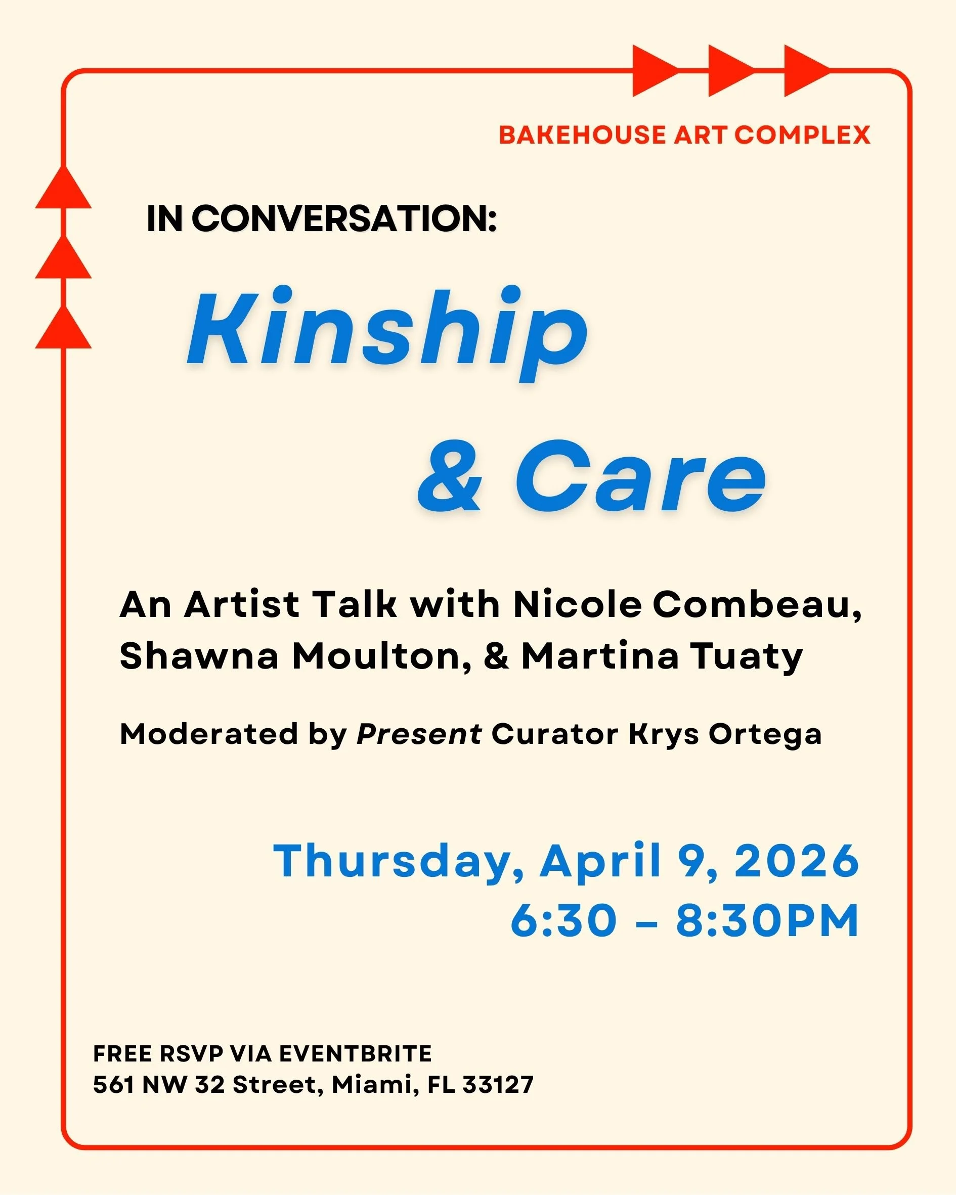 We’re closing out our Bakehouse at Forty talk series with In Conversation: Kinship and Care, a panel discussion that brings together resident artists Nicole Combeau, Shawna Moulton, and Martina Tuaty, moderated by Krys Ortega.